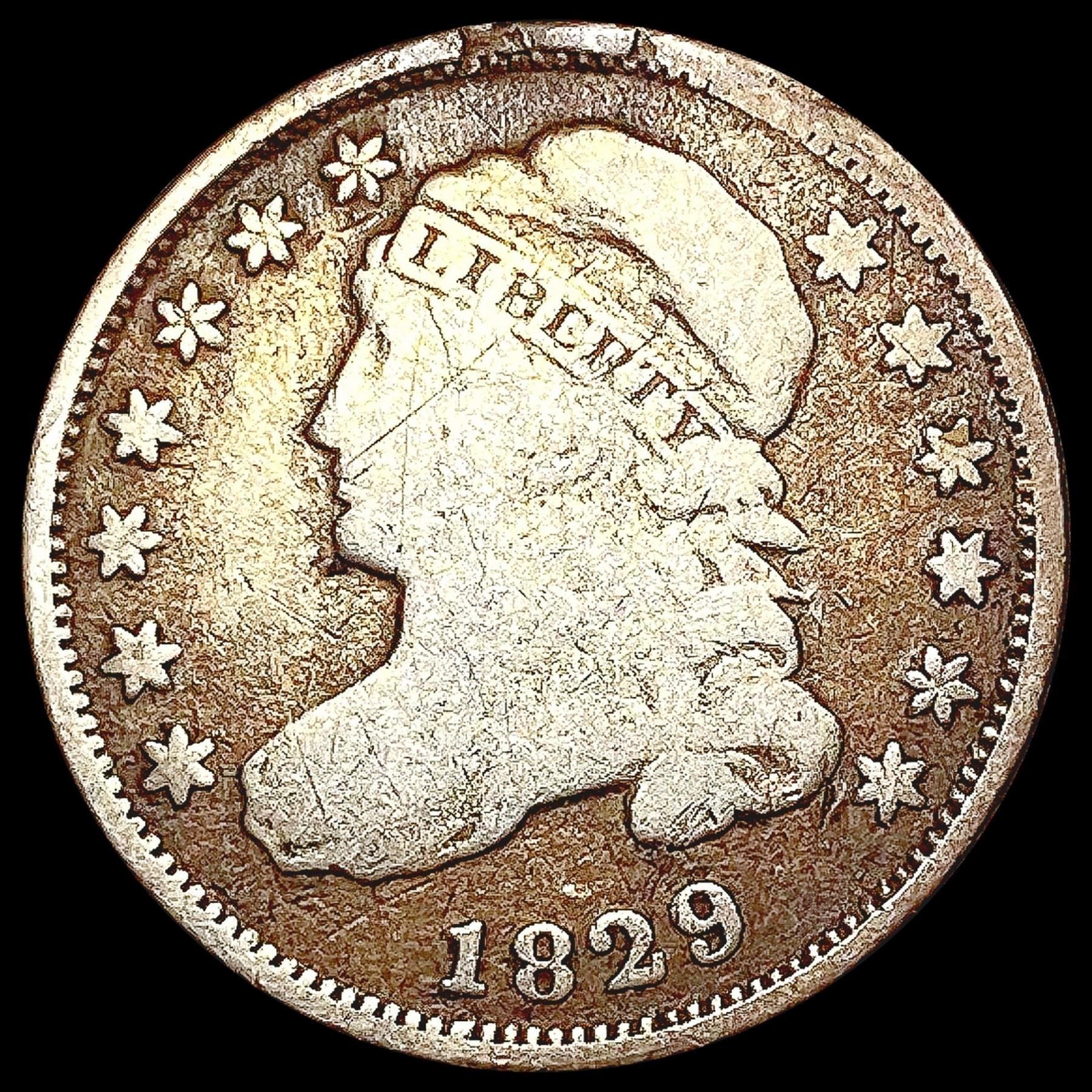 1829 Sq Base 2 Capped Bust Dime NICELY CIRCULATED
