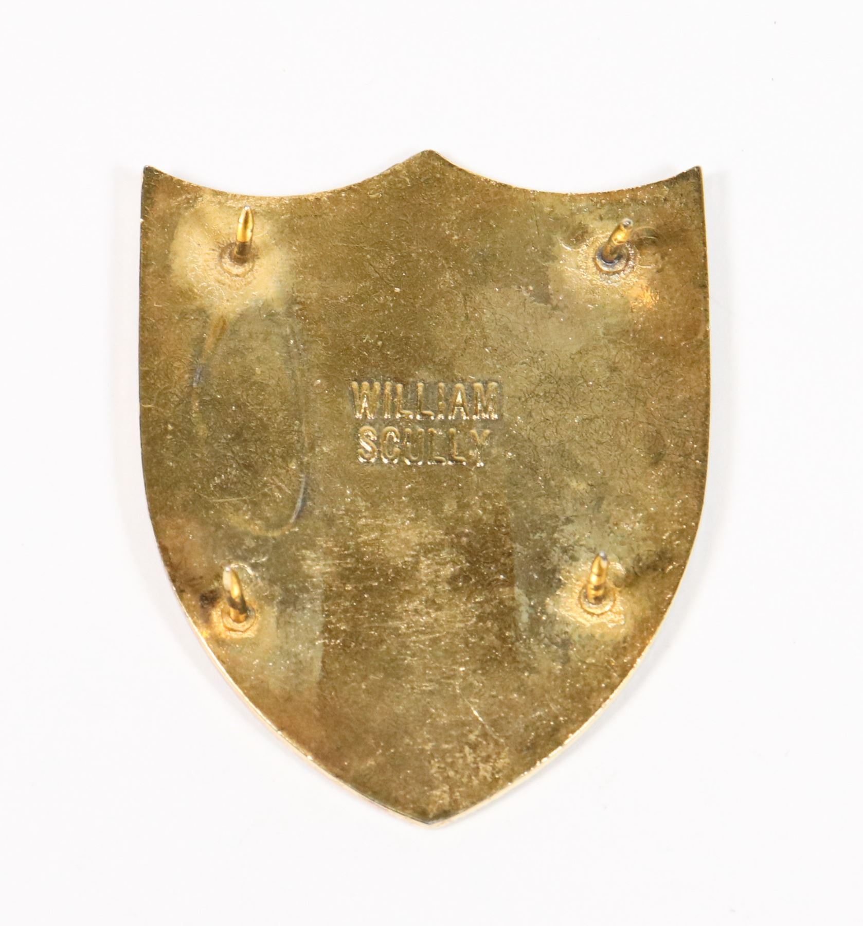 SHIELD WILLIAM SCULLY MARKED ON REVERSE HAS 4 PINS ON REVERSE REQUIRES FASTENERS CANADA CANADIAN ALLIED FORCES
