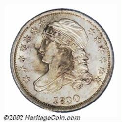 1830 10C Small 10C MS64 PCGS. JR-2, R.1. This is the most common die marriage of the 1830 Capped Bust Dime. Of course, no Bust Dime can rightly be considered common in the finer Mint State grades. This is an interestingly, yet no less originally toned example with mottled silver-gray and orange-apricot iridescence. Blushes of deeper color are seen here and there, mostly over the obverse portrait, but we can find no singularly bothersome abrasions. Well frosted with a sharp strike, and housed in a first generation PCGS holder. Important notice: We expect to be auctioning lots at the rate of 200-250 per hour. Sometimes eBay Premier live bid software cannot keep up with that pace, so we strongly recommend that you place a realistic proxy bid now as insurance to avoid disappointment. Also please note that all Heritage/CAA lots purchased through eBay Premier carry a 20% Buyer's Premium. Please make sure you read the Terms and Conditions.