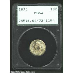 1830 10C Small 10C MS64 PCGS. JR-2, R.1. This is the most common die marriage of the 1830 Capped Bus