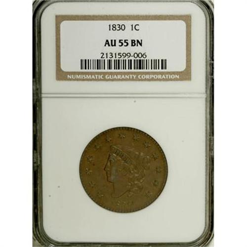 1830 1C Large Letters AU55 NGC. NGC Census: (15/42