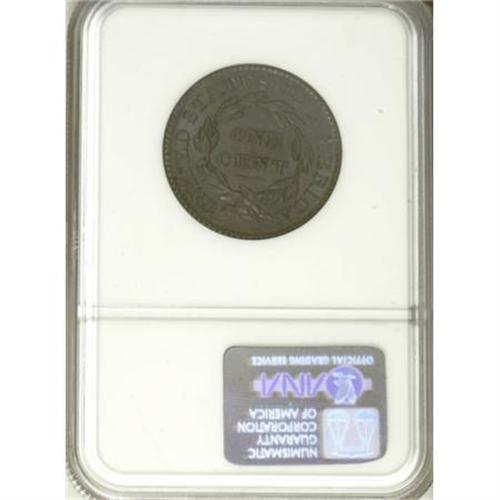 <B>1830 1C Large Letters MS64 Brown NGC.</B></I> N-1, R.1. Noyes Die State B with die cracks from stars 1 and 2. The sole Large Letters marriage for the date. This is a satiny and unmarked near-Gem with consistent chocolate toning. Well struck aside from the centers of a few right-side stars. Census: 8 in 64 Brown, 3 finer (10/07). EAC 55.<BR><BR><B>Coin Engraver:</B> Robert Scot or John Reich<BR><BR><b>Shipping:</b> Coins & Currency (<a target="_blank" href="http://www.heritageauctions.com/common/shipping.php">view shipping information</a>)