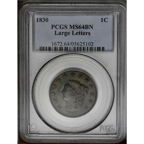 1830 1C Large Letters MS64 Brown PCGS. N-1, R.1. Noyes 1830[1C] Large Letters MS64 Brown PCGS.