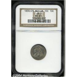 <B>1830/29<10C> MS61 NGC.</B></I> JR-5, R.2. Due to the high quality of the strike and surfaces, the fields are marvelously prooflike; the original toning is slightly lighter on the reverse, where the fields really "pop." Such reflective fields have the natural tendency to show contact marks, of which there are few of note on either side. This is a quality coin for the assigned grade with good eye appeal. Population: 4 in 61, 9 finer (7/04). <BR><BR><B>Important notice:</B> Heritage usually auctions material at the rate of 200-250 lots per hour. On some occasions eBay Live bid software or the Internet may not be able to keep up with the pace of the auction. We recommend placing a realistic absentee bid now as insurance to avoid disappointment. Occasionally the auctioneer may eliminate or reject an eBay Live bid, and the auctioneer may also reopen a lot after the close of the eBay live bidding (usually because we missed an audience bid), and may reject your bid even if it shows you as the winning bidder. By bidding via eBay Live, you agree that Heritage may award the lot to another bidder at its sole discretion under the circumstances described above or any other reasonable circumstances. Since eBay bids are not shown to us until we open the lot on the floor, we treat those bids just like floor bids. In most cases the floor responds before the eBay bid is presented to us, due to Internet lag time, so for consistency we have made it a policy that floor bids are always considered first over tie eBay live bids. Also please note that all Heritage lots purchased through eBay Live carry a 20% Buyer's Premium. Please make sure you read the Terms and Conditions before you bid. </span></font></tr></table></td></tr></table>