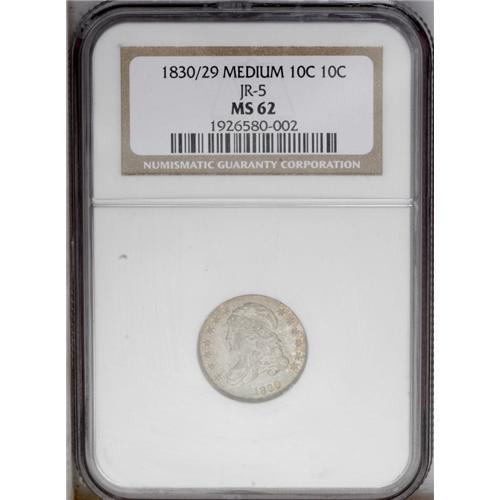 1830/29 10C MS62 NGC. JR-5, R.2. Rich golden-brown, st 1830/29[10C] MS62 NGC.