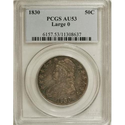 <B>1830 50C Large 0 AU53 PCGS.</B></I> PCGS Population (10/101). NGC Census: (0/0). (#6157)<BR><BR><b>Shipping:</b> Coins & Currency (<a target="_blank" href="http://www.heritageauctions.com/common/shipping.php">view shipping information</a>)