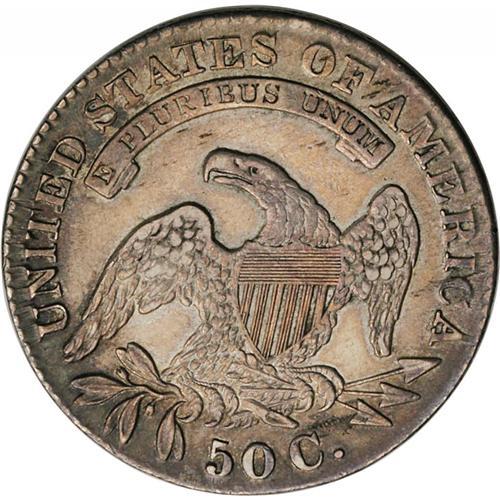 <B>1830<50C> Small 0 AU55 NGC.</B></I> O-111, R.2. LIBERTY is recut on the headband and the first A of AMERICA is noticeably lower than the adjoining M. Some minor softness of strike is seen at the centers on each side, but this hardly detracts from the pleasant rose-gray toning that blankets each side.<BR><I>Ex: Murray (6/2/1989).</B></I> Envelope Included.