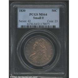 1830 50C Small 0 MS64 PCGS. O-101, R.1. This gorgeous near-Gem is richly toned in champagne and apri