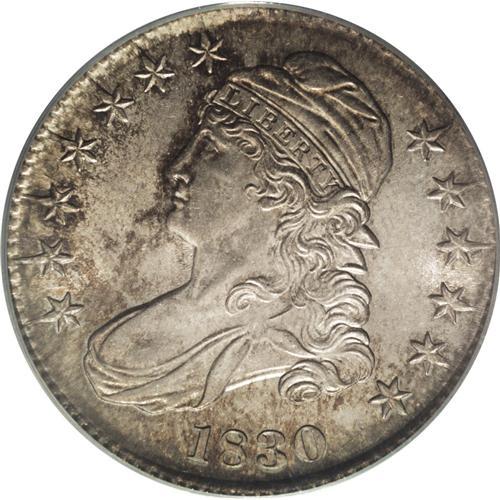 <B>1830 50C Small 0 MS65 PCGS.</B></I> O-101, R.1. Identifiable by clear recutting on the left side of the A in STATES, and a thin die line to the rim above the center of the letter. This lovely Gem is lustrous and beautifully toned, with clearly original russet, gold, rose, and cobalt-blue patina that is most prominent near the peripheries. The piece is well struck and nearly pristine, with nary a distracting blemish to be found on either side.<BR><BR><b>Shipping:</b> Coin/Currency (<a target="_blank" href="http://www.heritageauctions.com/common/shipping.php">view shipping information</a>)