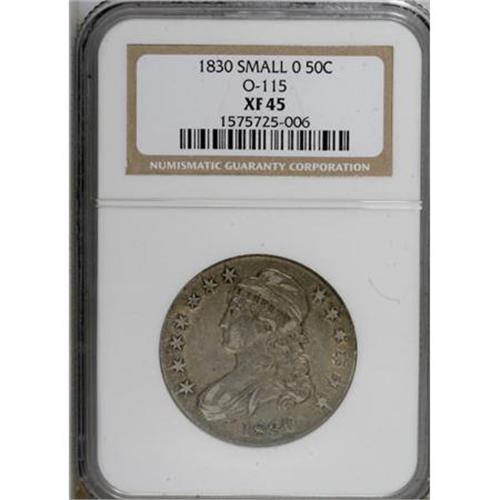 <B>1830 50C Small 0 XF45 NGC.</B></I> O-115. NGC Census: (113/1069). PCGS Population (94/757). Mintage: 4,764,800. Numismedia Wsl. Price for NGC/PCGS coin in XF45: $124. (#6156)<BR><BR><B>Coin Engraver:</B> John Reich<BR><BR><b>Shipping:</b> Coins & Currency (<a target="_blank" href="http://www.heritageauctions.com/common/shipping.php">view shipping information</a>)