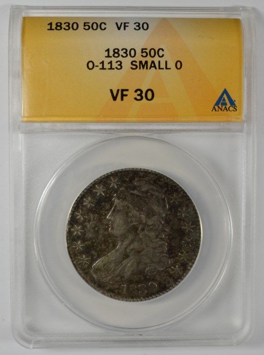 1830 BUST HALF DOLLAR, ANACS VF/XF-30 NICE COIN!
