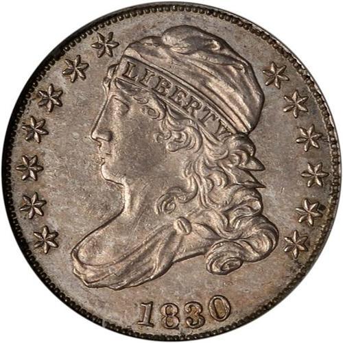 <b>1830 Capped Bust Dime. Medium 10¢. PCGS graded MS62.</b> A lustrous, toned example of this early Small Sized dime. The mint installed its first "closed collar" press in 1828 and this 1830 was struck from the equipment <b>(PCGS # 4516)</b>