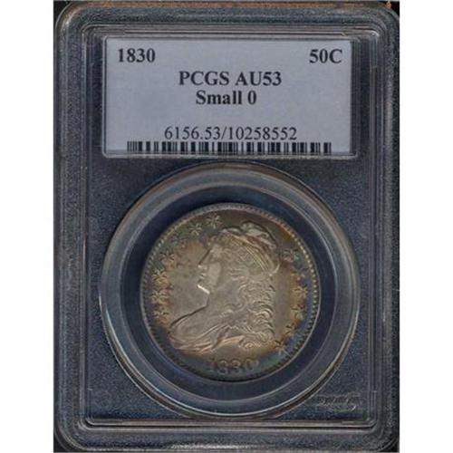 <b>1830 Capped Bust Half Dollar. Small 0. PCGS graded AU53.</b> Another handsome early half dollar displaying lovely album color with luster on both sides <b>(PCGS # 6156)</b>