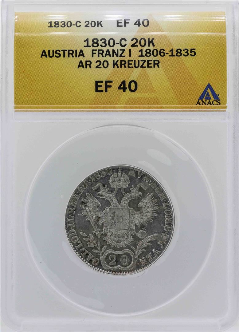 One 1830-C Austria 20 Kreuzer Coin ANACS XF40. ANACS Certified.