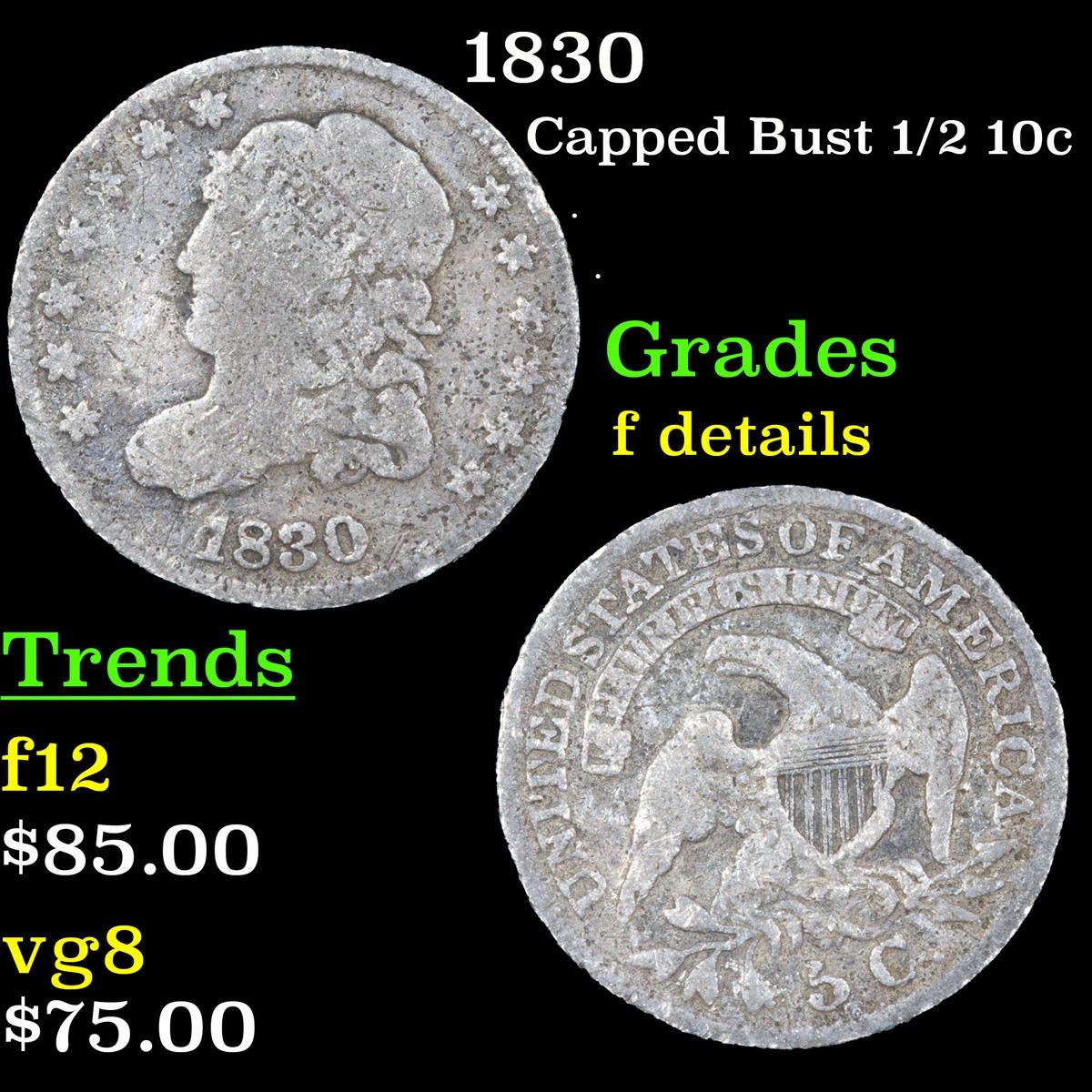 1830 . . Capped Bust Half Dime 1/2 10c Grades f details.