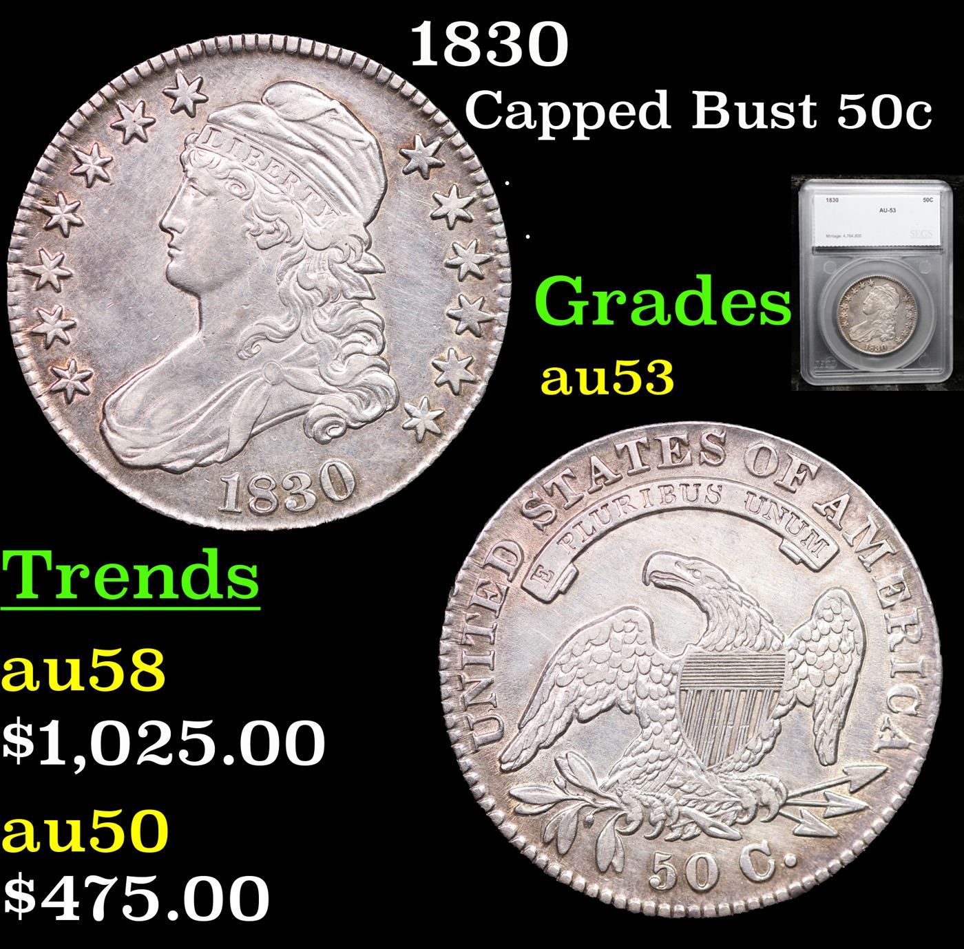 1830 Capped Bust Half Dollar 50c Graded au53 BY SEGS.