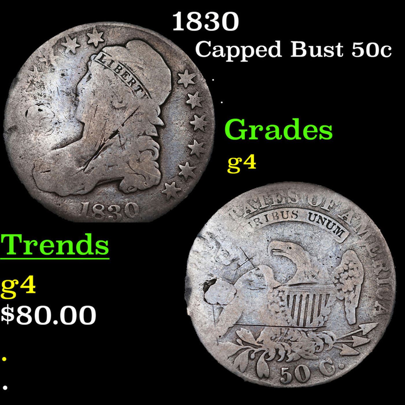 1830 Capped Bust Half Dollar 50c Grades g, good.