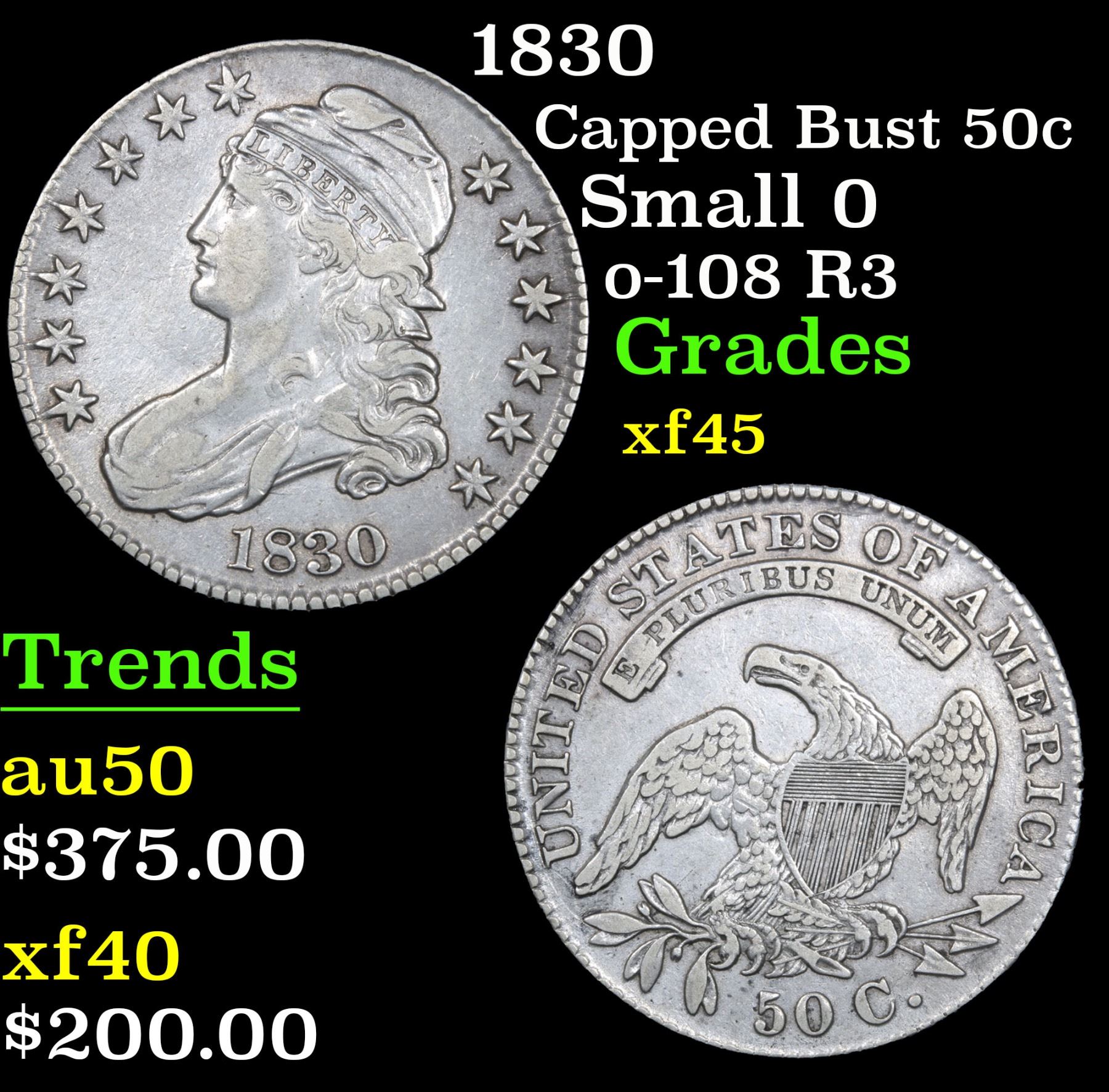 1830 Capped Bust Half Dollar 50c Grades xf+. Small 0; o-108 R3 A Corey's Pick