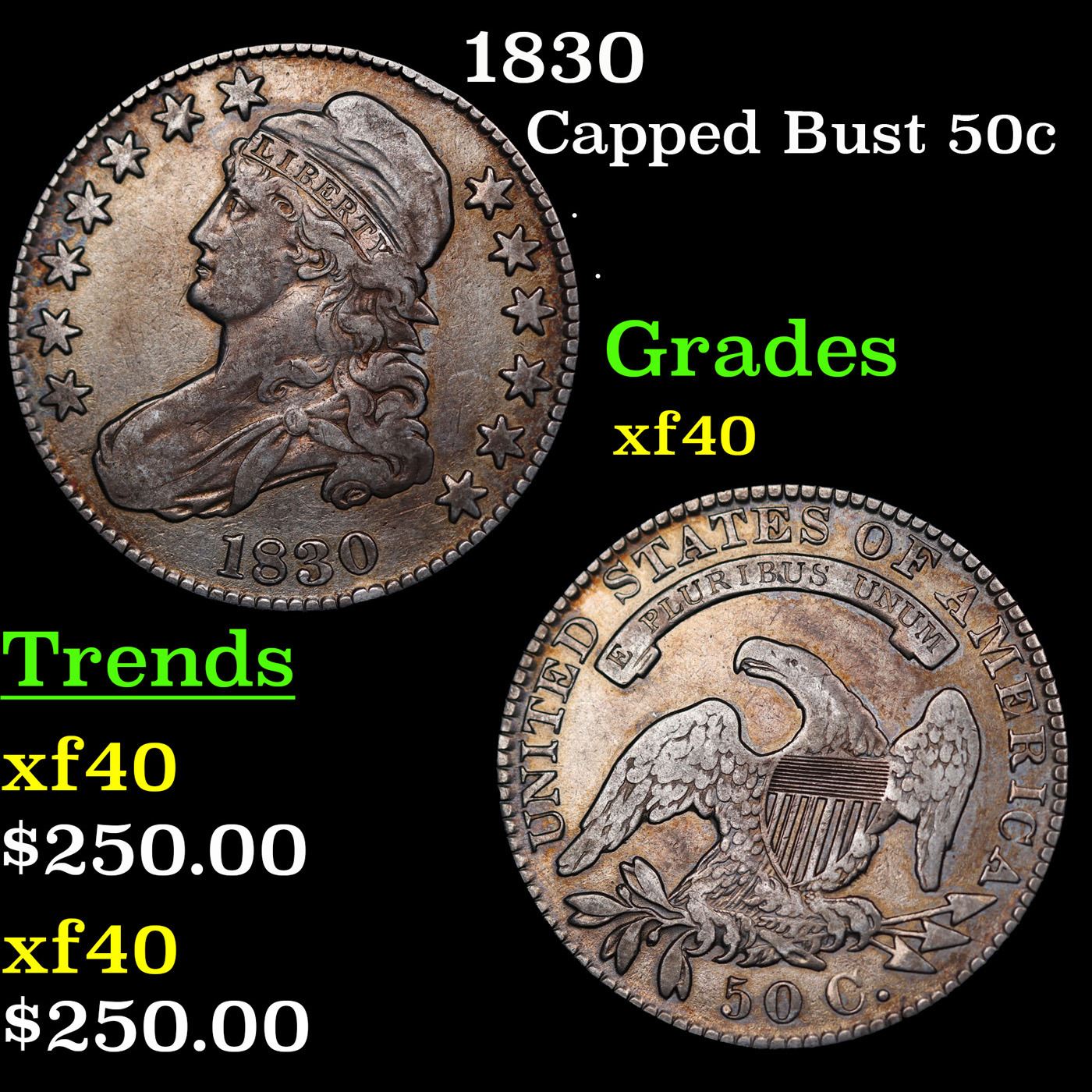 1830 Capped Bust Half Dollar 50c Grades xf.