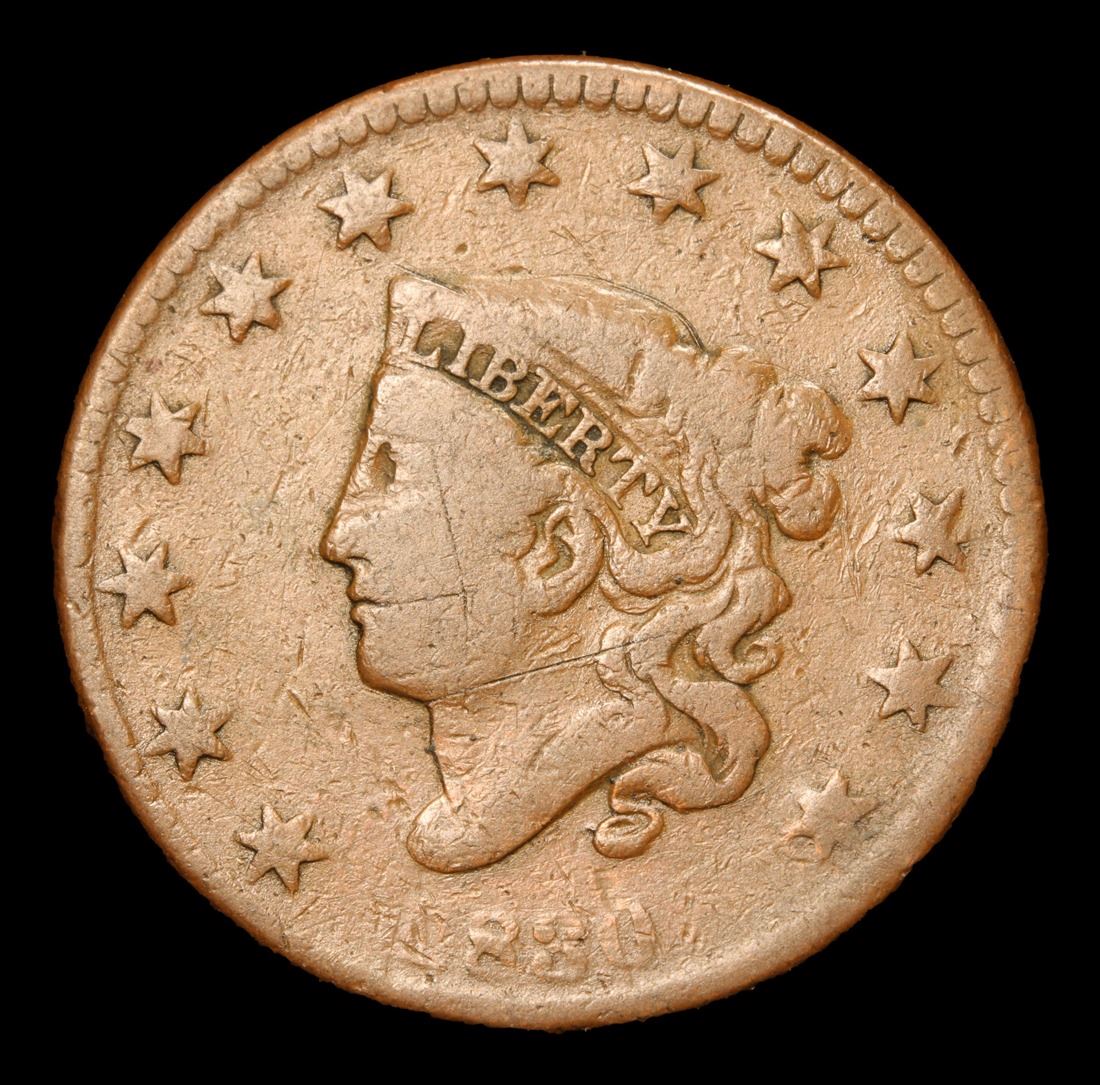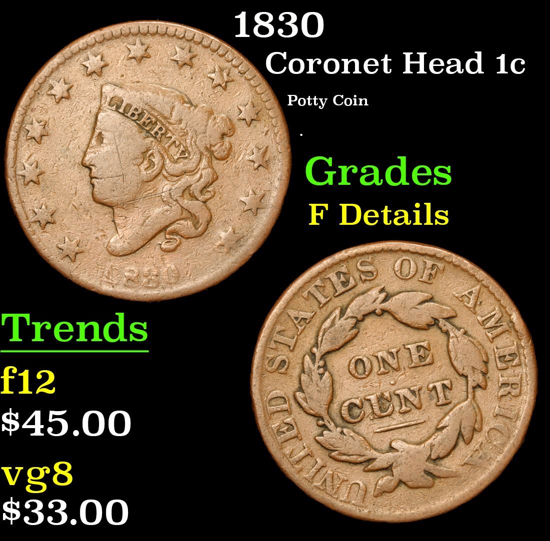 1830 Coronet Head Large Cent 1c Grades f details. Potty Coin