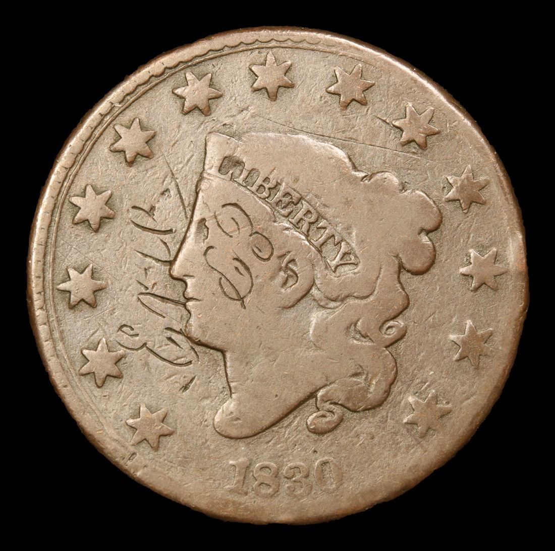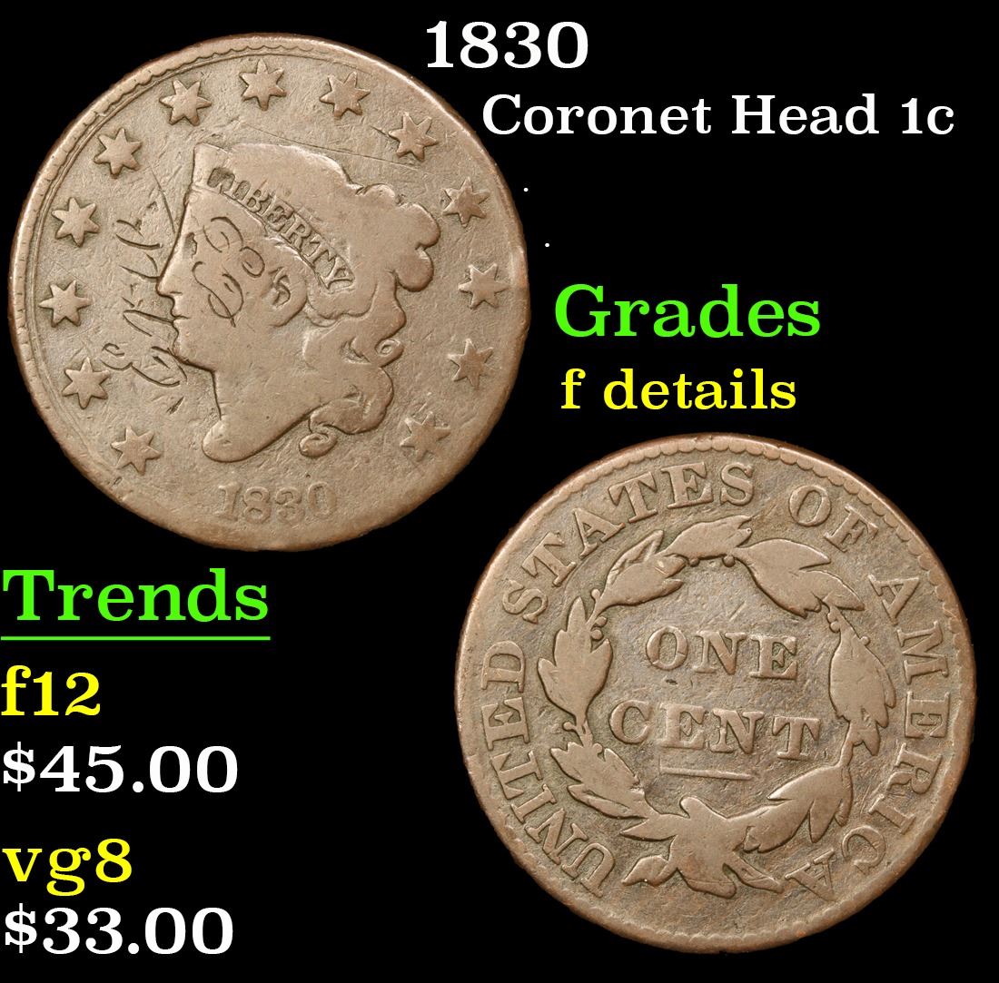 1830 . . Coronet Head Large Cent 1c Grades f details.