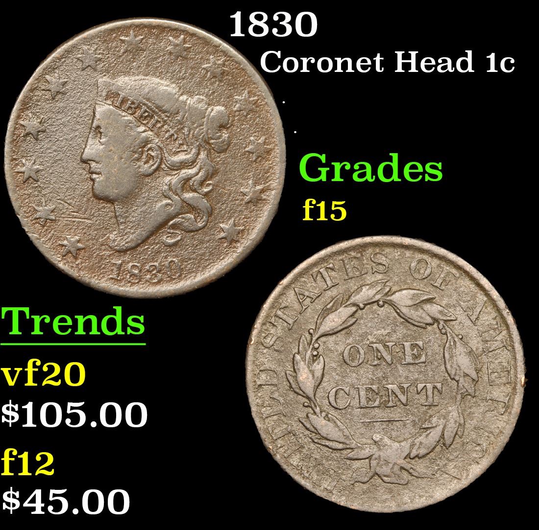 1830 . . Coronet Head Large Cent 1c Grades f+.