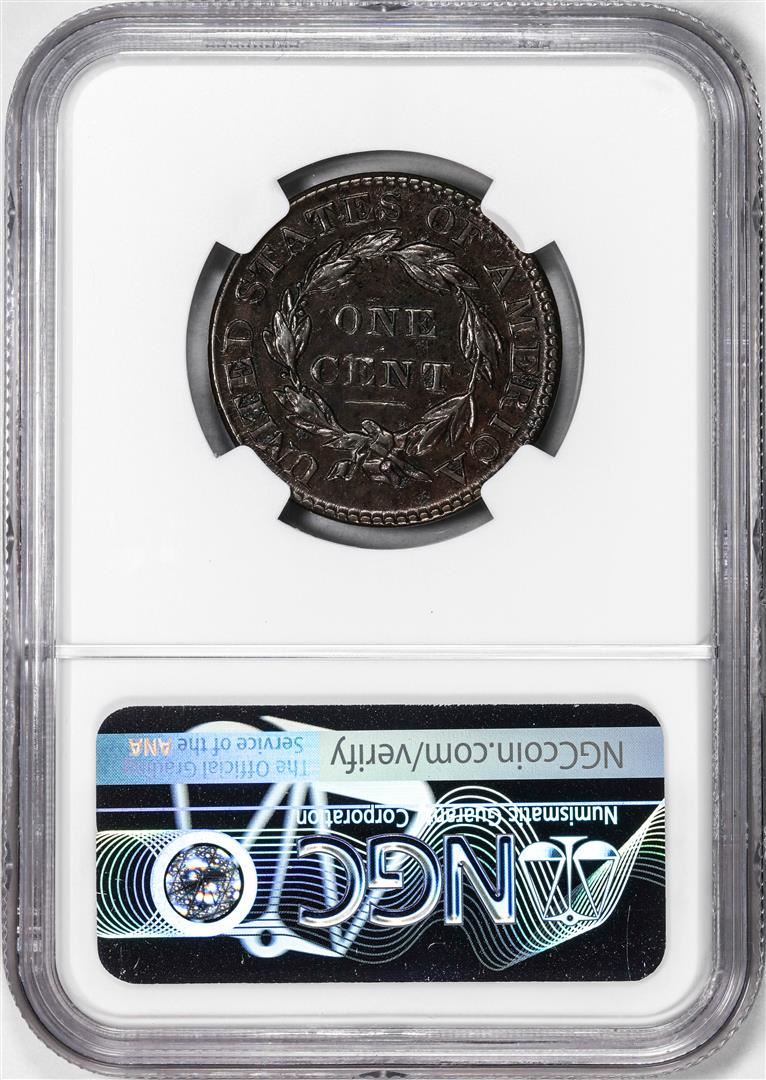 One 1830 Coronet Head Large Cent Coin NGC AU50BN. NGC Certified.