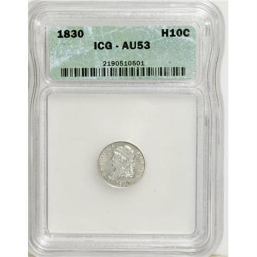 <B>1830 H10C AU53 ICG.</B></I> NGC Census: (6/424). PCGS Population (10/396). Mintage: 1,200,000. Numismedia Wsl. Price for NGC/PCGS coin in AU53: $192. (#4277)<BR><BR><B>Coin Engraver:</B> William Kneass<BR><BR><b>Shipping:</b> Coins & Currency (<a target="_blank" href="http://www.heritageauctions.com/common/shipping.php">view shipping information</a>)