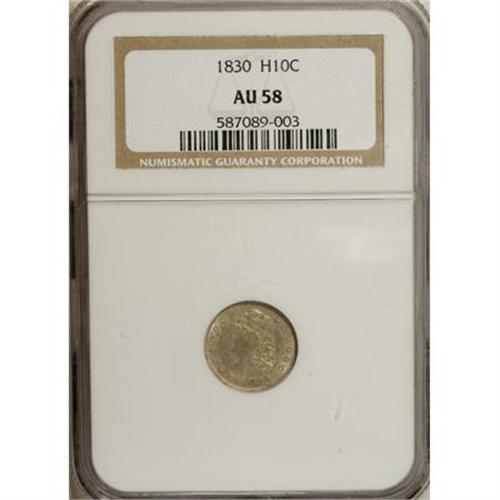 <B>1830 H10C AU58 NGC.</B></I> NGC Census: (58/347). PCGS Population (47/299). Mintage: 1,200,000. Numismedia Wsl. Price for NGC/PCGS coin in AU58: $242. (#4277)<BR><BR><B>Coin Engraver:</B> William Kneass<BR><BR><b>Shipping:</b> Coins & Currency (<a target="_blank" href="http://www.heritageauctions.com/common/shipping.php">view shipping information</a>\)