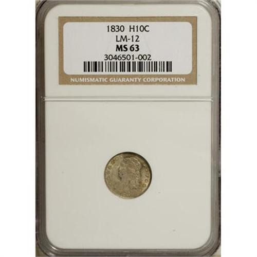 <B>1830 H10C MS63 NGC.</B></I> LM-12. NGC Census: (78/159). PCGS Population (88/126). Mintage: 1,200,000. Numismedia Wsl. Price for NGC/PCGS coin in MS63: $625. (#4277)<BR><BR><B>Coin Engraver:</B> William Kneass<BR><BR><b>Shipping:</b> Coins & Currency (<a target="_blank" href="http://www.heritageauctions.com/common/shipping.php">view shipping information</a>\)