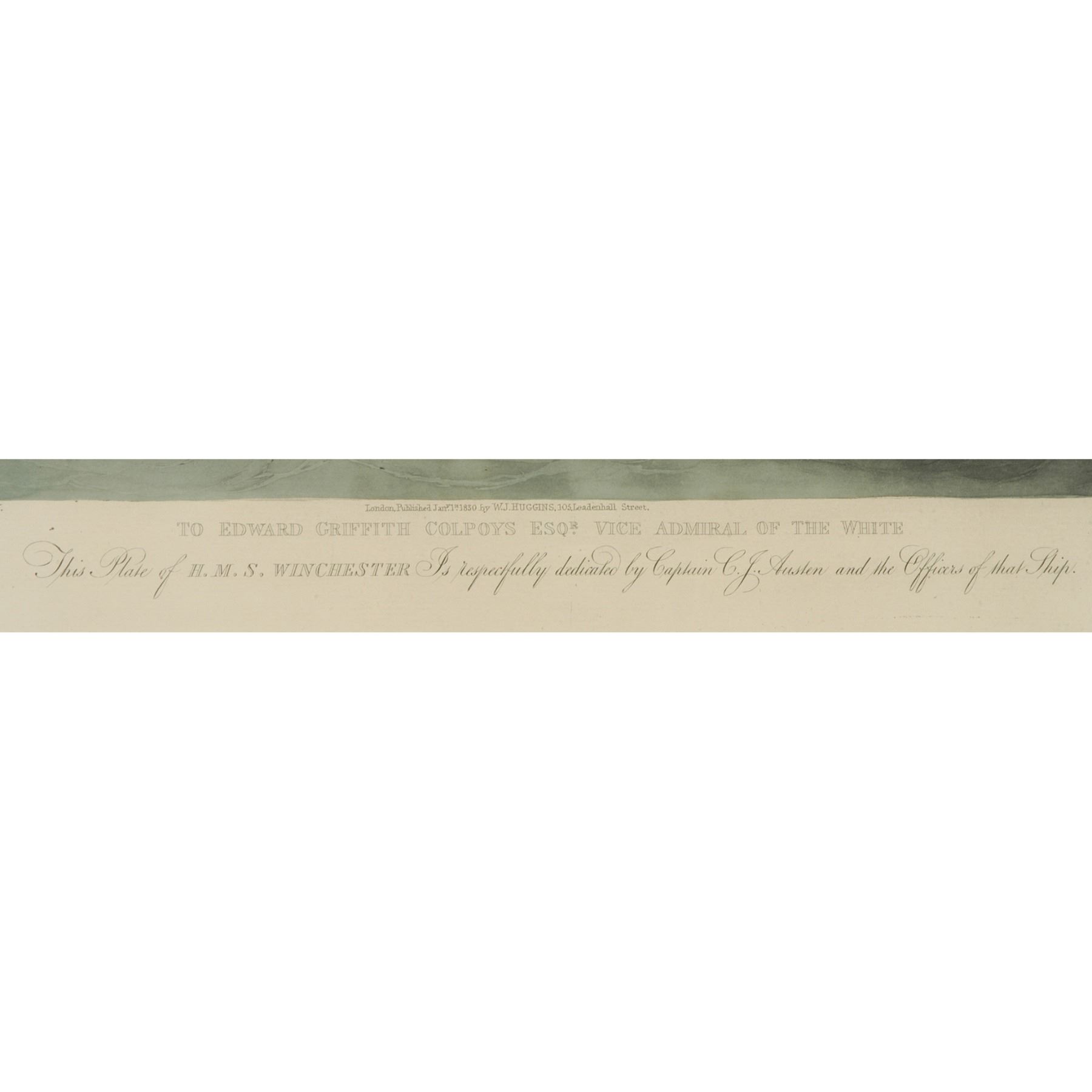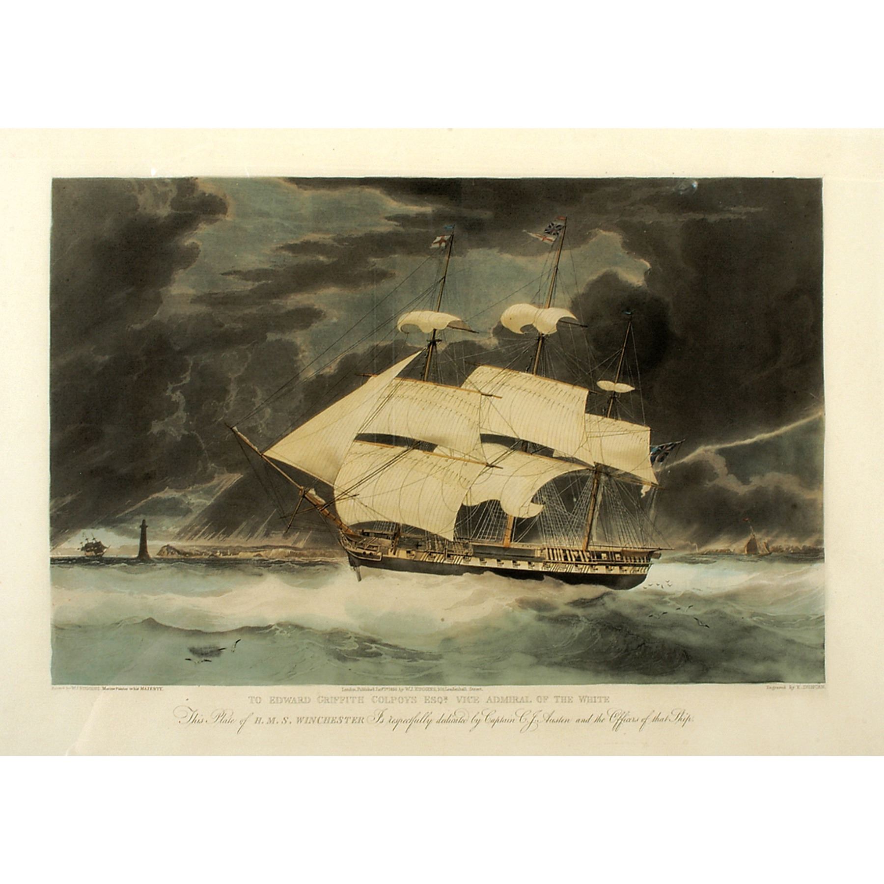 1830, Hand-colored Engraving, “Plate of H.M.S. Winchester,” by E. Duncan, London, Choice Near Mint.