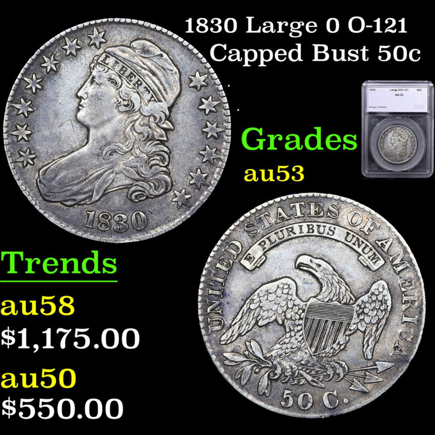 1830 Large 0 O-122 Capped Bust Half Dollar 50c Graded au53 By SEGS.