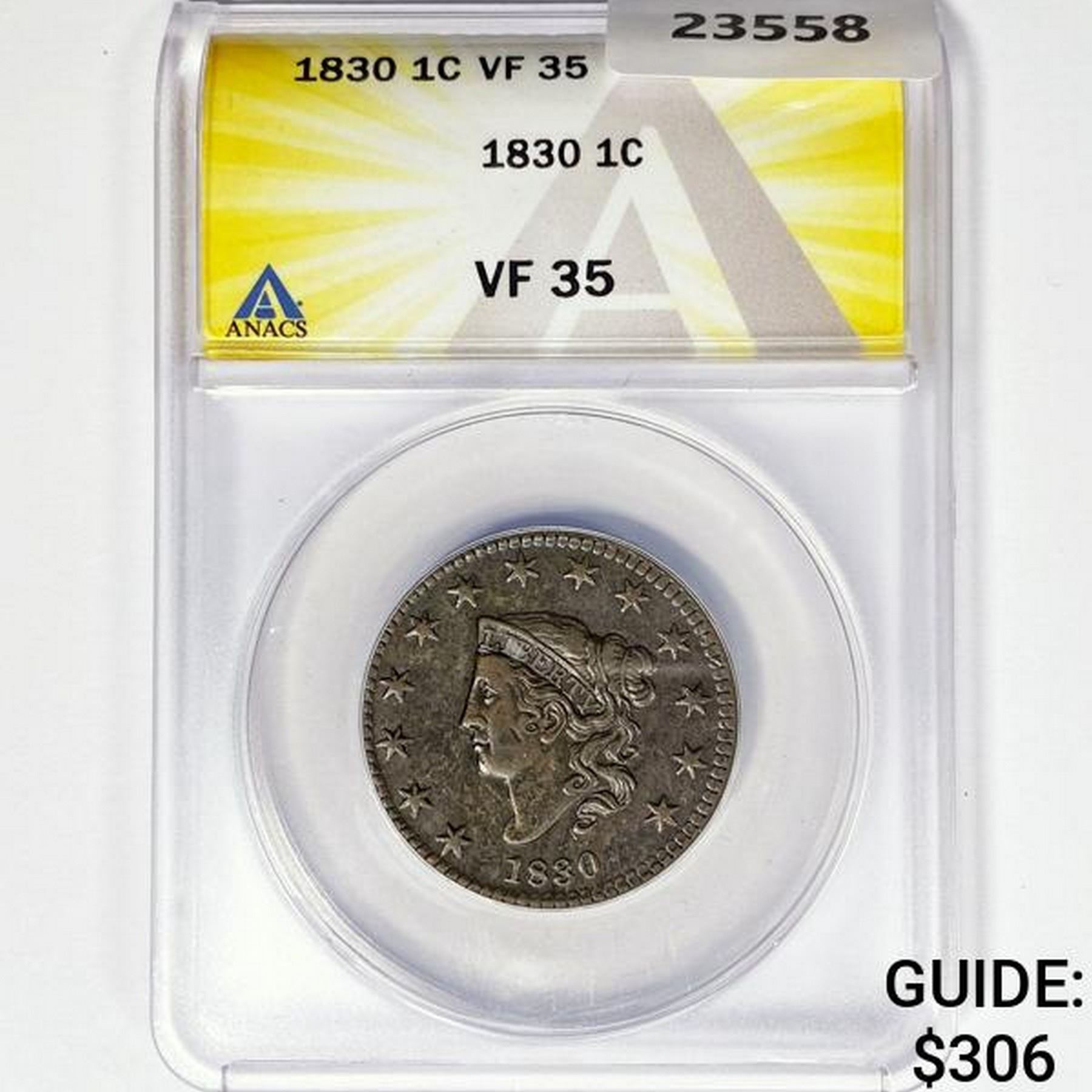 1830 Large Cent ANACS VF35