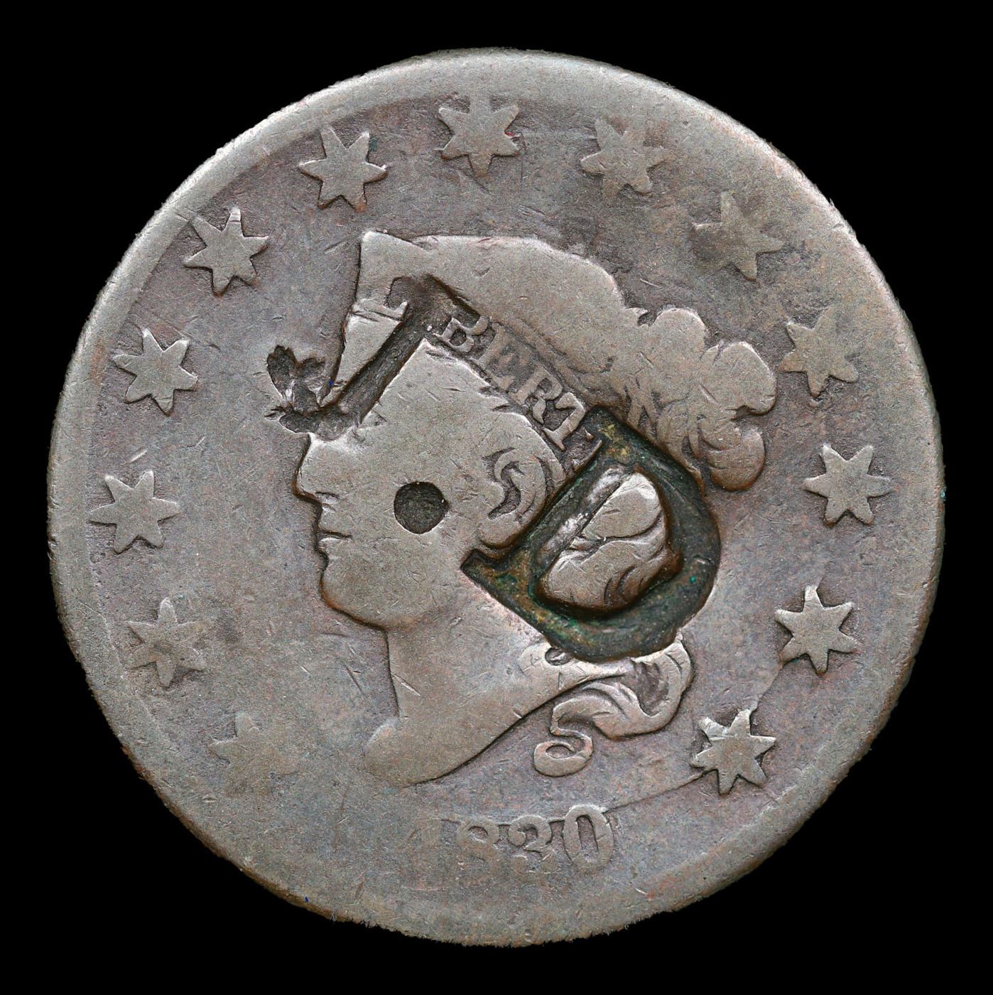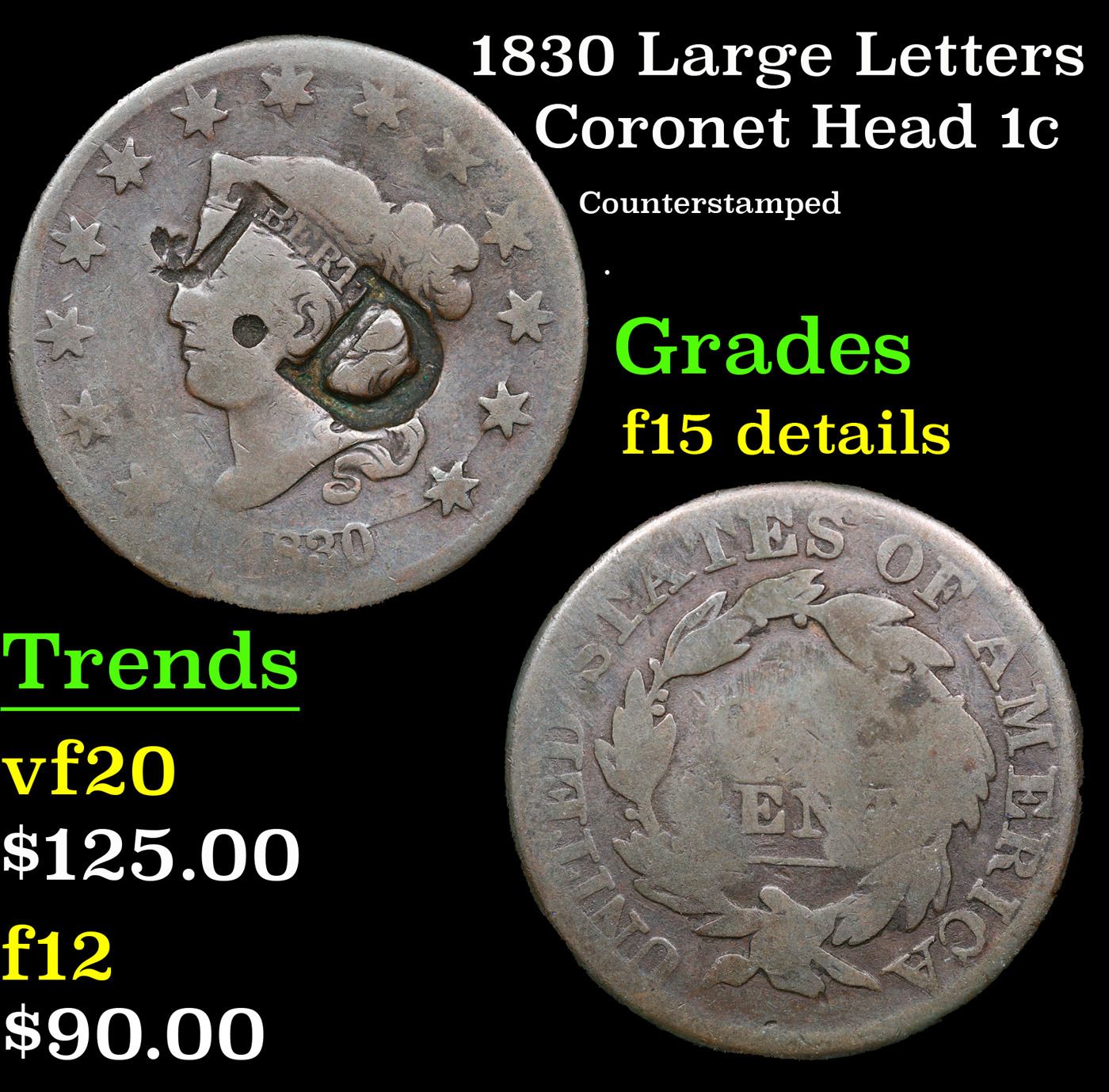 1830 Large Letters Coronet Head Large Cent 1c Grades F Details.