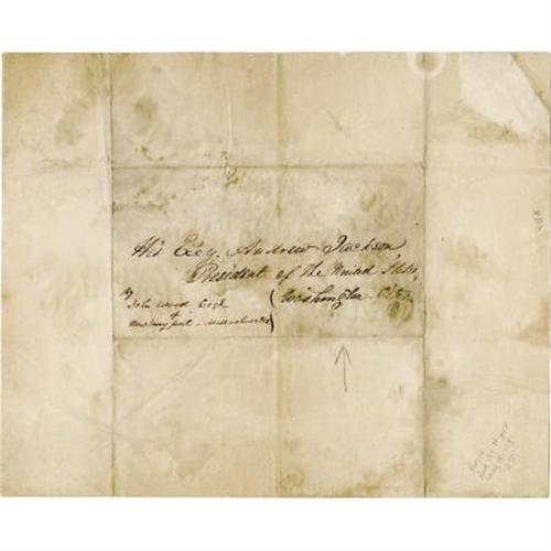 <B>1830 Letter to President Andrew Jackson Seeking Consideration For Slavery Law Violation.</B></I> One page, 7.75” x 9.5”, Newburyport Massachusetts , May 31, 1830, from Samuel Phillips, Customs collector, to Andrew Jackson, Washington City. In this letter a customs collector seeks President Jackson's intercession in a matter involving the violation of the 1818 slave code. The 1818 law concerned the importation of slaves into ports under United States control. Specifically the letter addresses a matter of a certain merchant, John Wood “<I>a respectable Merchant of this place, the owner of the Schooner, New Packet, which was seized some time since at New Orleans, for an alleged violation of the law of 1818, Touching the Slave Trade</B></I>”. Phillips goes on to extol Wood's virtues and integrity and writes “<I>it was never in the mind of Mr. Wood or his Captain to infringe or evade the law - They have therefore, as I do now, respectfully recommended him to your equitable consideration.</B></I>” The letter is toned with age and has the usual fold creases. It is addressed to Jackson on the verso. Very good condition. <I>From the collection of Henry E. Luhrs.</B></I><BR><BR><b>Shipping:</b> Flat Material, Small (<a target="_blank" href="http://www.heritageauctions.com/common/shipping.php">view shipping information</a>)