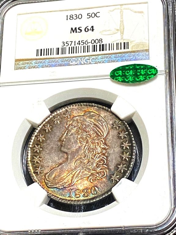 An 1830 CAC designation coin, rare in grade of Mint State 64 by NGC. Valuable coin.