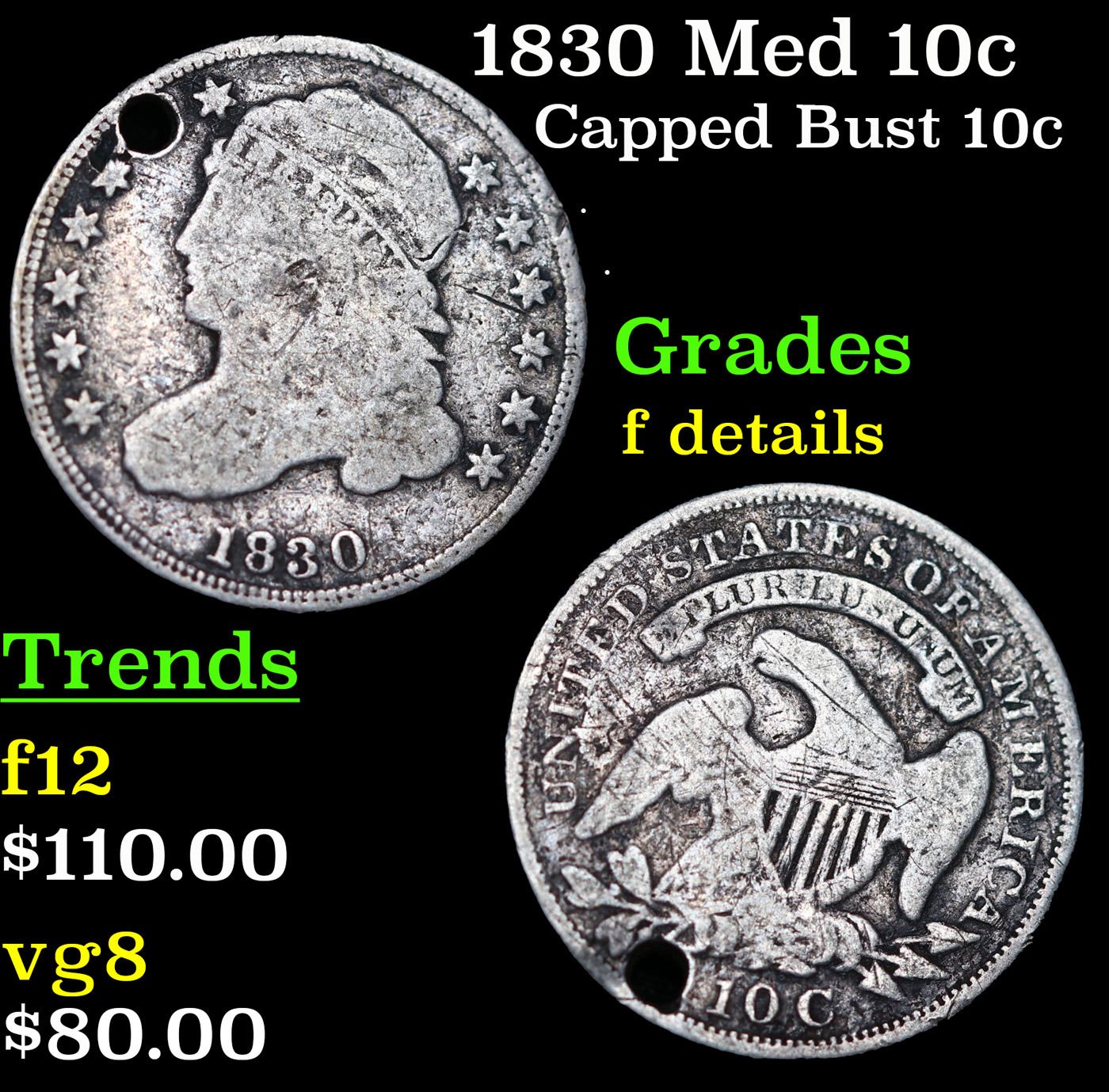 1830 Med 10c Capped Bust Dime 10c Grades f details.