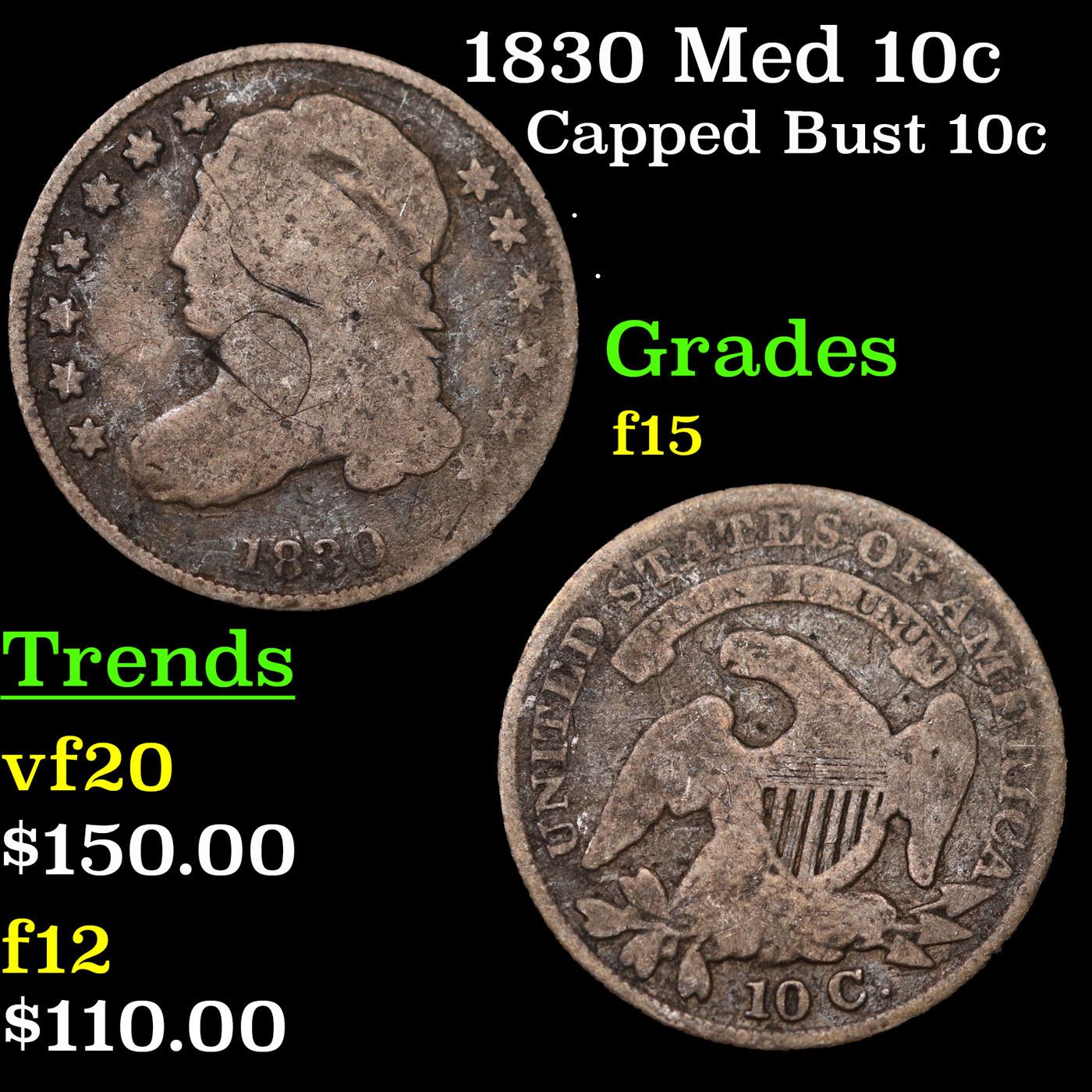 1830 Med 10c Capped Bust Dime 10c Grades f+.