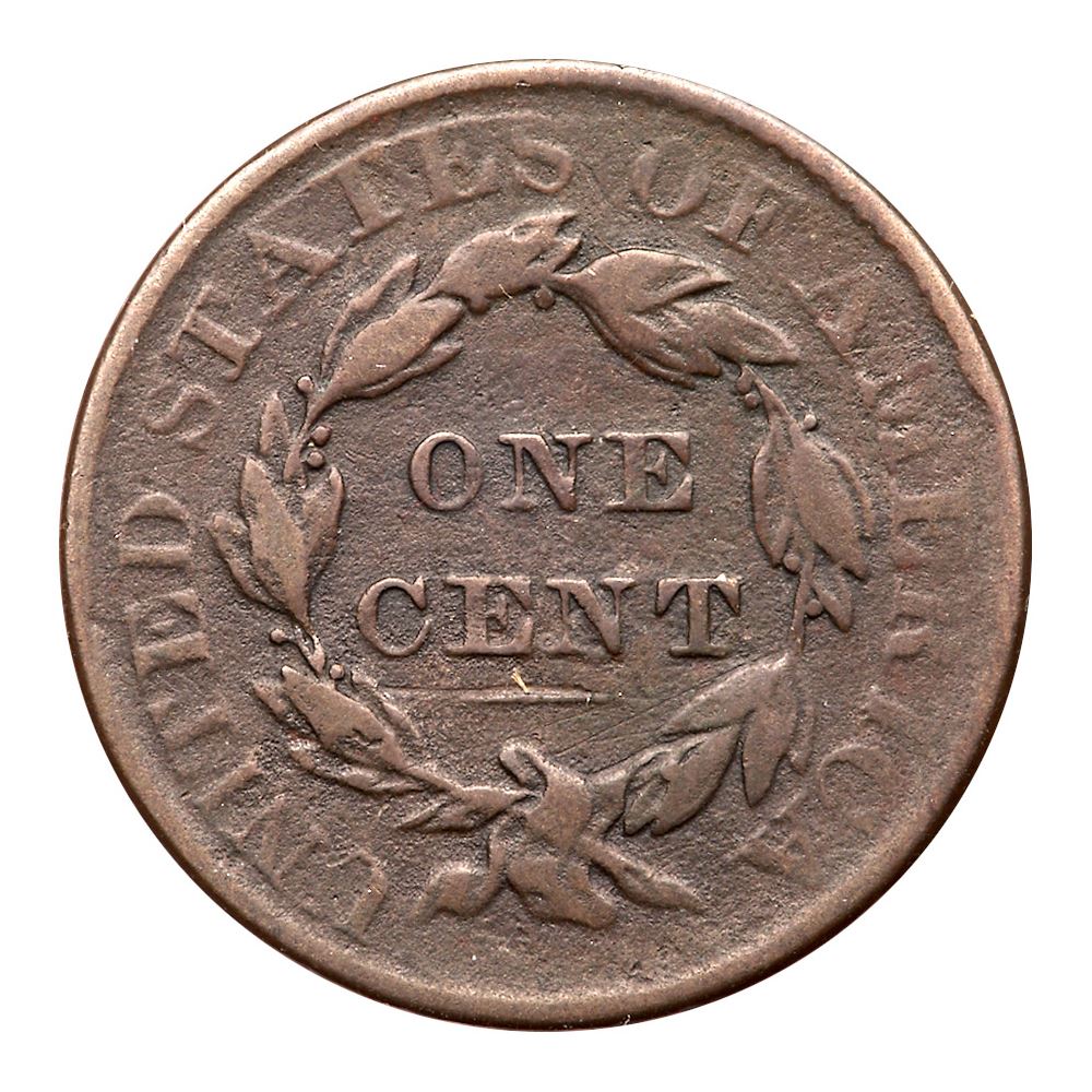 1830 N-11 R5 Large Letters VG8+. Sharpness near F12 but the fields and protected areas are covered with uniform extremely fine granularity while the devices are smooth. No marks or verdigris. Rather glossy light olive and chocolate brown. Decent for the grade in spite of the imperfect surfaces. Estimated Value 175 - UP