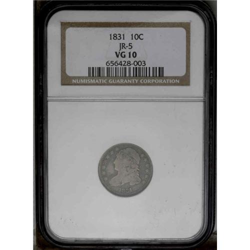 1831 10C VG10 NGC. JR-5, R-1. Warmly toned in pleasing 1831[10C] JR-5, R.1. Reiver state d. VG10 NGC