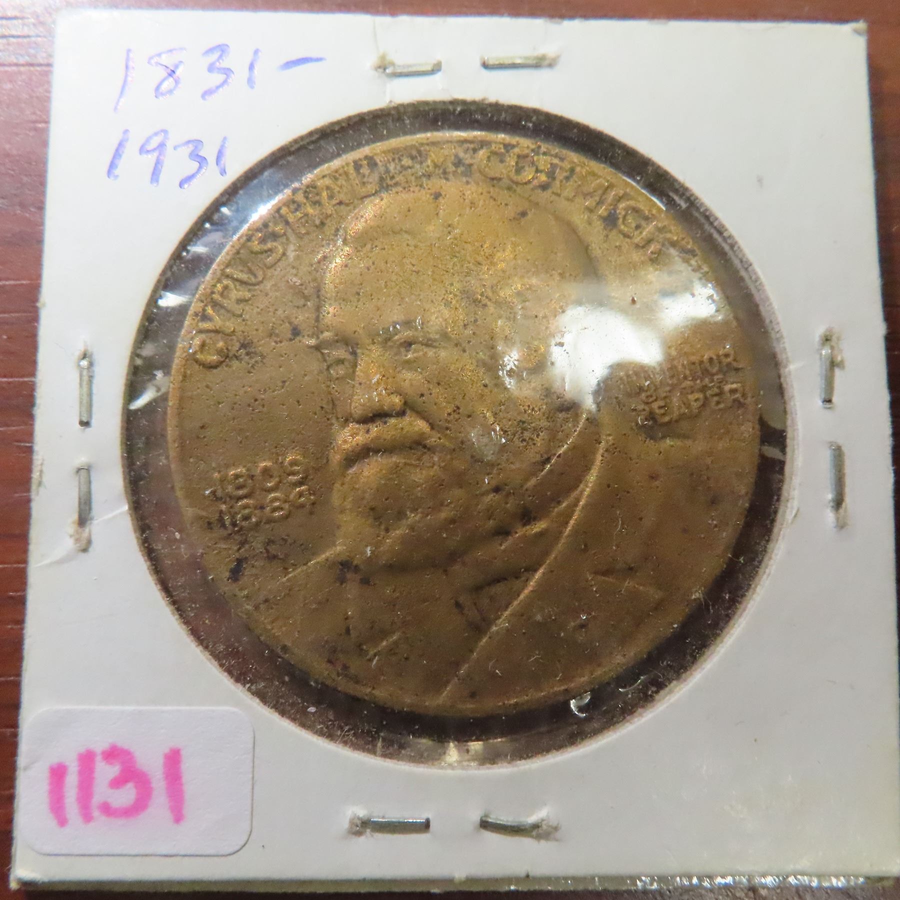 1831 – 1931 Cyrus McCormick medal. Centennial of the inventor of the Reaper. VG.