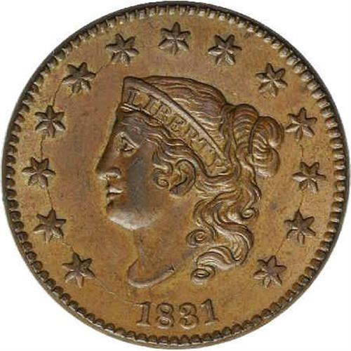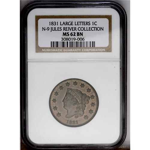 1831 1C Large Letters MS62 Brown NGC. N-9, R.2. Early 1831[1C] Large Letters. N-9, R.2. MS62 Brown N