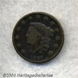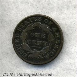 <table><tr><td><table><tr><td>1831 1C Large Letters VG8 Altered Surfaces, Scratched, Uncertified. N-12, R.1. A late stage of Die State A, the die break near 5 o'clock reaches the lower left point of the star. A dark and moderately granular example with lengthy intersecting pinscratches on the central reverse. <BR><BR><B>Important notice:</B> Heritage usually auctions material at the rate of 200-250 lots per hour. On some occasions eBay Live bid software or the Internet may not be able to keep up with the pace of the auction. We recommend placing a realistic absentee bid now as insurance to avoid disappointment. Occasionally the auctioneer may eliminate or reject an eBay Live bid, and the auctioneer may also reopen a lot after the close of the eBay live bidding (usually because we missed an audience bid), and may reject your bid even if it shows you as the winning bidder. By bidding via eBay Live, you agree that Heritage may award the lot to another bidder at its sole discretion under the circumstances described above or any other reasonable circumstances. Since eBay bids are not shown to us until we open the lot on the floor, we treat those bids just like floor bids. In most cases the floor responds before the eBay bid is presented to us, due to Internet lag time, so for consistency we have made it a policy that floor bids are always considered first over tie eBay live bids. Also please note that all Heritage lots purchased through eBay Live carry a 20% Buyer's Premium. Please make sure you read the Terms and Conditions before you bid. <BR><BR><B>IMPORTANT ANNOUNCEMENT ABOUT RESERVES:</B> Heritage now divulges all reserves on its web site 7 days before every auction. If you want to know whether the reserve on this lot has been met, and if not, what the reserve amount is, please visit this lot page on the HeritageCoin.com web site, or email: bid@HeritageGalleries.com </span></font></td></tr></table></td></tr></table>