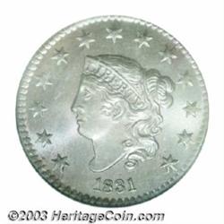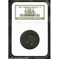<table><tr><td><TABLE cellSpacing=0 cellPadding=0 width="100%" bgColor=#000000 border=0><TBODY> <TR><TD width="100%"><TABLE cellSpacing=1 cellPadding=3 width="100%" border=0><TBODY><TR><TD width="100%" bgColor=#79735c><FONT face=arial color=#ffffff size=3><B>Description</B> </FONT></TD></TR><TR><TD width="100%" bgColor=#ffffff><FONT face=arial size=2><B>1831 1C Medium Letters MS66 * Brown NGC.</B></I> N-3, R.1. Many of the letters in LIBERTY are recut, as is the top of the E in CENT. A lovely chocolate-brown Gem with well preserved fields and imposing eye appeal. Although most of the stars do not have full centrils, the major devices are well struck. NGC has certified only eight 1831 Cents as N-3, with the present Cent as the finest graded and the second finest as MS64 Brown. </FONT></TD></TR></TBODY></TABLE></TD></TR></TBODY></TABLE><BR><A name=PricesRealized></A><TABLE cellSpacing=0 cellPadding=0 width="100%" bgColor=#000000 border=0><TBODY><TR><TD width="100%"><TABLE cellSpacing=1 cellPadding=3 width="100%" border=0><TBODY><TR><TD width="100%" bgColor=#79735c><A name=PR><FONT face=arial color=#ffffff size=3><B>Previous Prices from Heritage Auctions</B> </FONT></A></TD></TR><TR><TD bgColor=#f6f6ed>No Prior Data Recorded </TD></TR><TR><TD bgColor=#ffffff><FONT face=arial size=1 ?>PLEASE NOTE: All prices realized reflect the final hammer price PLUS the buyer's premium in auctions that charge a buyer's premium. Each item has a notation at the top of the listing indicating whether that lot included a buyer's premium. Example: A item that sells with a final hammer price of $100 and a 20% buyer's premium will display with a price realized of $120. All information listed is intended to be as accurate as possible, but errors are possible. Please use this guide carefully and inform us of any inaccuracies. </FONT></TD></TR></TBODY></TABLE></TD></TR></TBODY></TABLE><BR><TABLE cellSpacing=0 cellPadding=0 width="100%" bgColor=#000000 border=0><TBODY><TR><TD width="100%"><TABLE cellSpacing=1 cellPadding=3 width="100%" border=0><TBODY><TR><TD width="100%" bgColor=#79735c colSpan=6><FONT face=arial color=#ffffff size=3><B>Price Guide*</B> </FONT></TD></TR><TR bgColor=#f6f6ed><TD align=middle><B>Grade</B> </TD><TD align=middle><B>Coin World<BR>(Trends)</B> </TD><TD align=middle><B>Numismedia<BR>Retail</B> </TD><TD align=middle><B>Numismedia<BR>Wholesale</B> </TD><TD align=middle><B>Coin<BR>Universe</B> </TD><TD align=middle><B>Heritage<BR>Value Index</B> </TD></TR><TR bgColor=#ffffff><TD align=middle>65</TD><TD align=right>---</TD><TD align=right>---</TD><TD align=right>---</TD><TD align=right>---</TD><TD align=right>---</TD></TR><TR style="FONT-WEIGHT: bold" bgColor=#cccfdd><TD align=middle>66</TD><TD align=right>---</TD><TD align=right>---</TD><TD align=right>---</TD><TD align=right>---</TD><TD align=right>---</TD></TR><TR bgColor=#ffffff><TD align=middle>67</TD><TD align=right>---</TD><TD align=right>---</TD><TD align=right>---</TD><TD align=right>---</TD><TD align=right>---</TD></TR><TR bgColor=#ffffff><TD colSpan=6><FONT size=1>*All information listed is intended to be as accurate as possible, but errors are possible. No item may be returned or refused based on this information which is provided as a service to our customers. You should contact each pricing source directly to determine the accuracy of this information. </FONT></TD></TR></TBODY></TABLE></TD></TR></TBODY></TABLE><BR><TABLE cellSpacing=0 cellPadding=0 width="100%" bgColor=#000000 border=0><TBODY><TR><TD width="100%"><TABLE cellSpacing=1 cellPadding=3 width="100%" border=0><TBODY><TR><TD width="100%" bgColor=#79735c><FONT face=arial color=#ffffff size=3><B>Population Guide</B> </FONT></TD></TR><TR bgColor=#ffffff><TD align=middle></TD></TR></TBODY></TABLE></TD></TR></TBODY></TABLE><BR><TABLE cellSpacing=0 cellPadding=0 width="100%" bgColor=#000000 border=0><TBODY><TR> Important notice: Heritage usually auctions material at the rate of 200-250 lots per hour. On some occasions eBay Live bid software or the Internet may not be able to keep up with the pace of the auction. We recommend placing a realistic absentee bid now as insurance to avoid disappointment. Occasionally the auctioneer may eliminate or reject an eBay Live bid, and the auctioneer may also reopen a lot after the close of the eBay live bidding (usually because we missed an audience bid), and may reject your bid even if it shows you as the winning bidder. By bidding via eBay Live, you agree that Heritage may award the lot to another bidder at its sole discretion under the circumstances described above or any other reasonable circumstances. Also please note that all Heritage lots purchased through eBay Live carry a 20% Buyer's Premium. Please make sure you read the Terms and Conditions before you bid.</TD></TR></TBODY></TABLE></TD></TR></TBODY></TABLE>