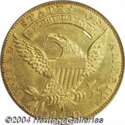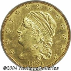 <B>1831<$2 1/2> AU55 PCGS.</B></I> Bass-3028, Breen-6134, R.4. William Kneass succeeded Robert Scot as Chief Engraver following Scot's death in 1823. While he did not replace Scot's Capped Head Left motif on the quarter eagle, Kneass modified this design and introduced smaller stars and letters, as well as redrew the portraits of Liberty and the eagle to give them a more professionally finished look. Perhaps most notably, he implemented beaded borders surrounded by high, plain raised rims produced by the newly invented "close collar." The low mintage 1831 (4,520 pieces), along with the 1830 and 1832, is more difficult to locate in all grades than the first-year 1829. The specimen we offer in this sale features bright, yellow-gold surfaces that retain considerable luster. Every feature is well defined, and only a few small marks are encountered. In sum, this is a breathtaking coin whose eye appeal is equally as impressive as its technical quality. <BR><BR><B>Important notice:</B> Heritage usually auctions material at the rate of 200-250 lots per hour. On some occasions eBay Live bid software or the Internet may not be able to keep up with the pace of the auction. We recommend placing a realistic absentee bid now as insurance to avoid disappointment. Occasionally the auctioneer may eliminate or reject an eBay Live bid, and the auctioneer may also reopen a lot after the close of the eBay live bidding (usually because we missed an audience bid), and may reject your bid even if it shows you as the winning bidder. By bidding via eBay Live, you agree that Heritage may award the lot to another bidder at its sole discretion under the circumstances described above or any other reasonable circumstances. Since eBay bids are not shown to us until we open the lot on the floor, we treat those bids just like floor bids. In most cases the floor responds before the eBay bid is presented to us, due to Internet lag time, so for consistency we have made it a policy that floor bids are always considered first over tie eBay live bids. Also please note that all Heritage lots purchased through eBay Live carry a 20% Buyer's Premium. Please make sure you read the Terms and Conditions before you bid. </span></font></tr></table></td></tr></table>