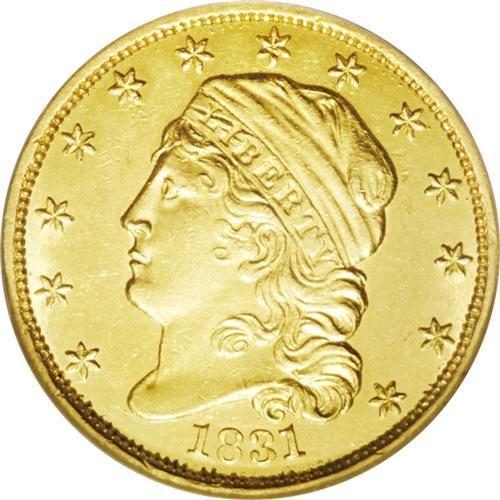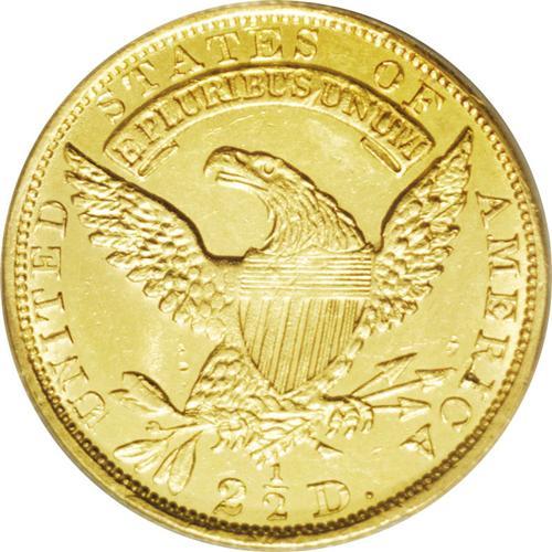 <B>1831<$2 1/2>--Rim Filed--NCS. Uncirculated Details.</B></I> Bass-3028, Breen-6134, R.4, the only known die pairing. The 1831 is a more difficult issue in the Capped Head Left series, comparable to the 1830 and 1832, and considerably more difficult than the 1829. Only 4,520 pieces were struck, and most of these pieces were melted shortly after production as their bullion value exceeded face. Rim smoothing is detected on each side, and a single diagonal mark resides on Liberty's cheek.