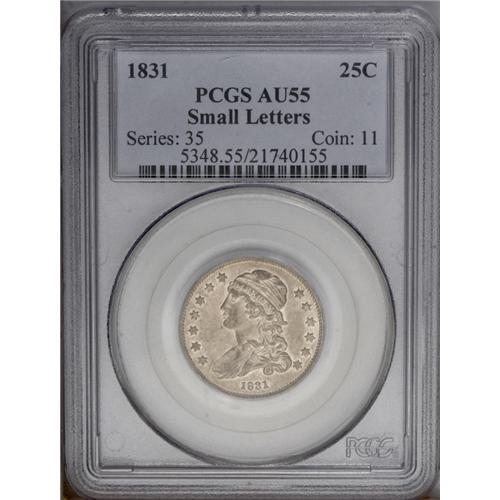 1831 25C Small Letters AU55 PCGS. B-4, R.1. A die crac 1831[25C] Small Letters AU55 PCGS.