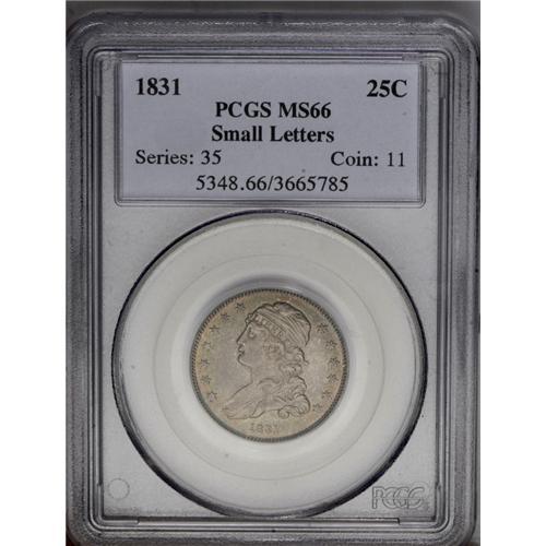 1831 25C Small Letters MS66 PCGS. B-1, R.3. A die crac 1831[25C] Small Letters MS66 PCGS.