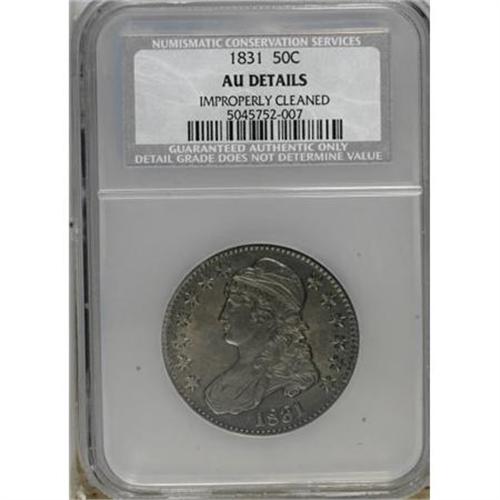 <B>1831 50C --Improperly Cleaned--NCS. AU Details.</B></I> NGC Census: (59/925). PCGS Population (111/792). Mintage: 5,873,660. Numismedia Wsl. Price for NGC/PCGS coin in AU50: $310. (#6159)<BR><BR><B>Coin Engraver:</B> John Reich<BR><BR><b>Shipping:</b> Coins & Currency (<a target="_blank" href="http://www.heritageauctions.com/common/shipping.php">view shipping information</a>)