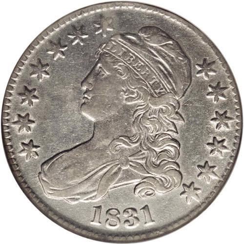 1831 50C AU50 NGC. O-106, R.3. On this example, die la 1831[50C] AU50 NGC.